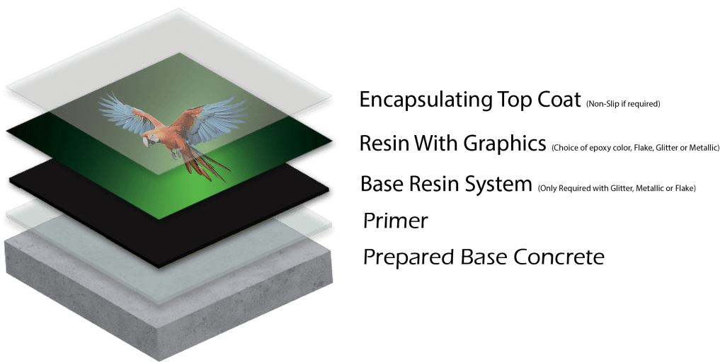 Unlike Standard traditional floor graphics Richco Resin Fused Decals are fully encapsulated into the resin allowing for a much longer lasting and highly durable floor.